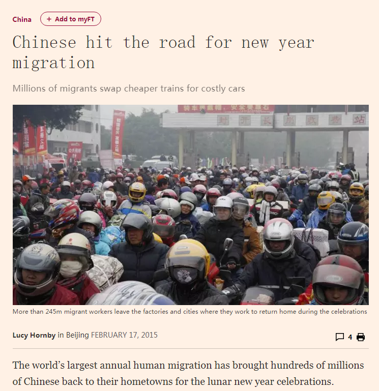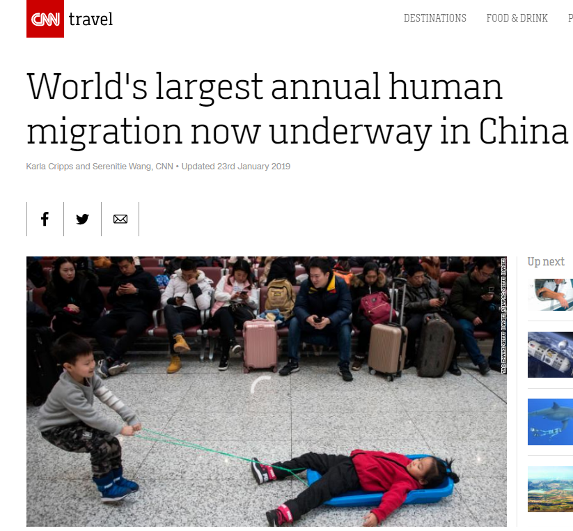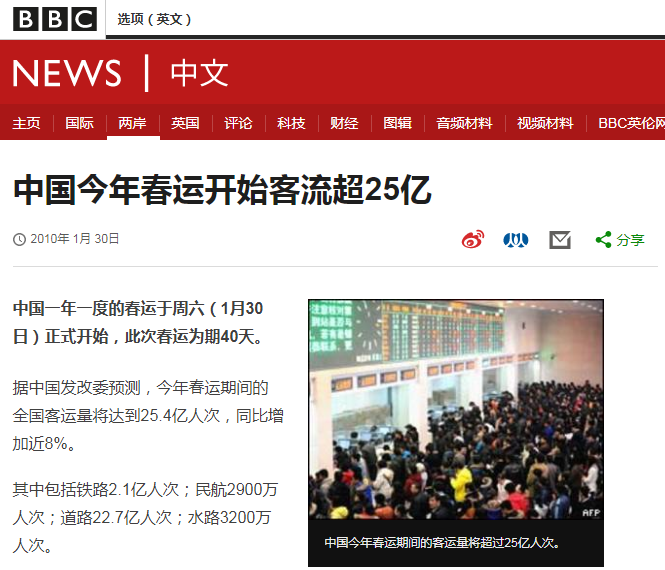 中国春运是全球最大规模的人类迁移勾当,英国公司(BBC)1月27日以此为题称,