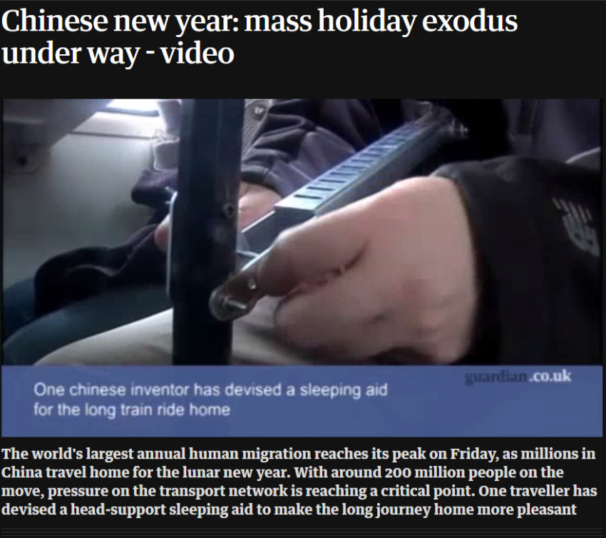但因为春运期间火车票需求量大增,对家乡和亲人的热爱。一名搭客本人设想了一款“帮眠神器”,
