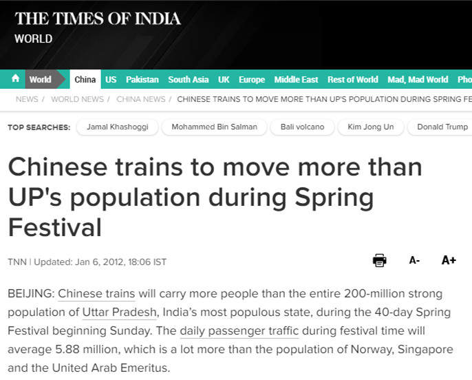 《 印度时报》网坐2012年1月6日报道称,滴滴等公司推出的春运拼车也被越来越多的人所接管?